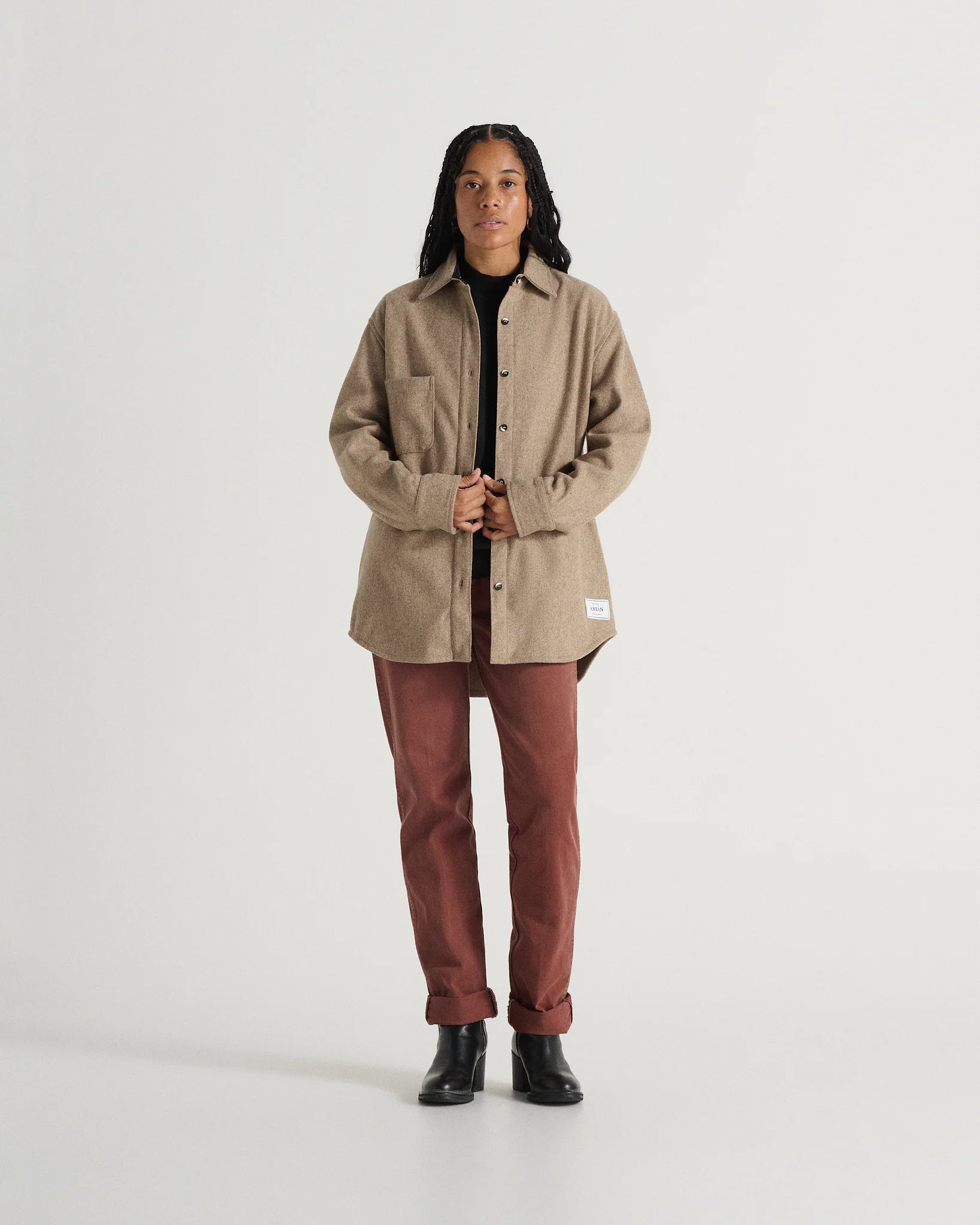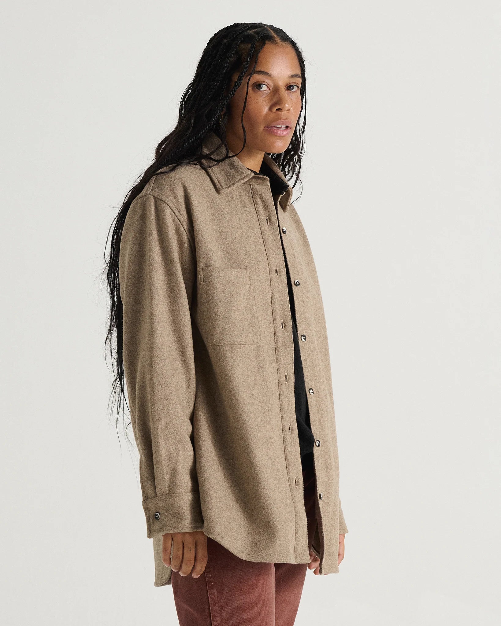 Offering a looser fit of Anian's most iconic shirt, the Relaxed Modern Melton Wool pairs the natural warmth of post-consumer recycled Melton with a roomier, slightly oversized silhouette.