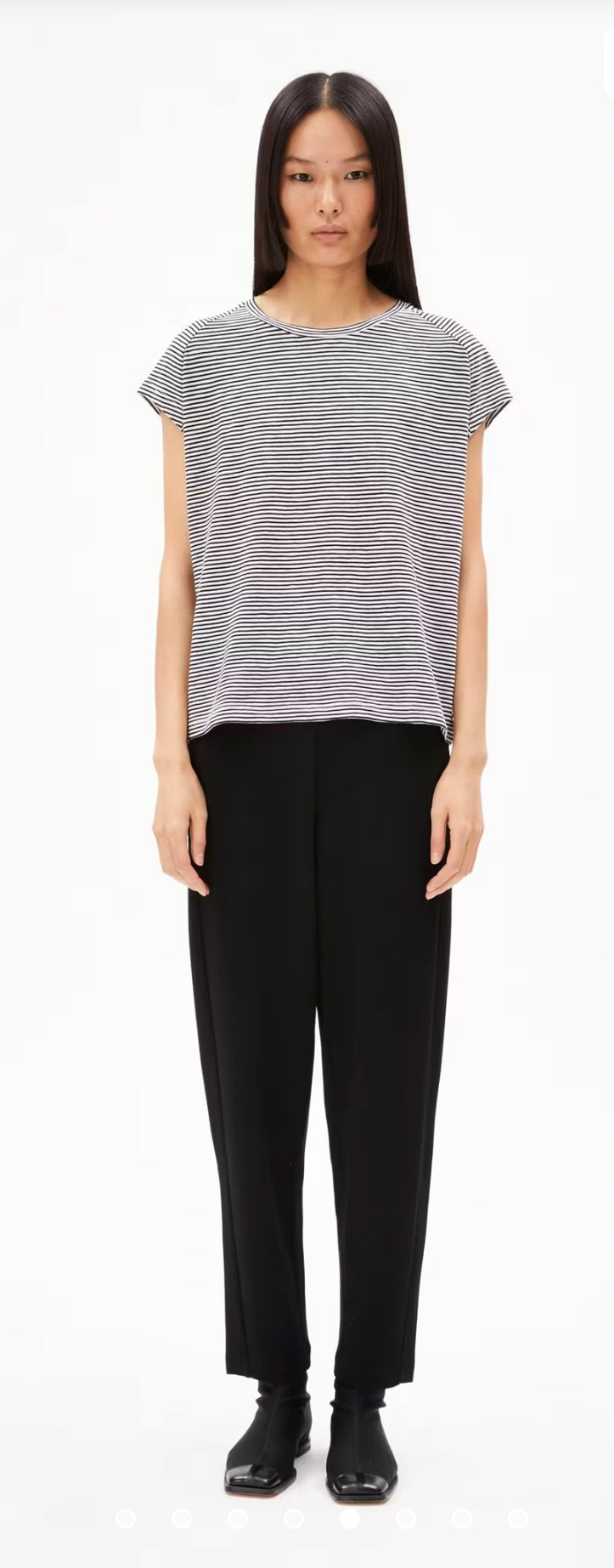 The MAGDAALENA trousers in soft jersey fabric offer a loose fit with a tapered leg, elasticated waistband and side slit pockets. LENZING™ ECOVERO™ viscose, recycled polyamide and elastane ensure a high level of comfort.