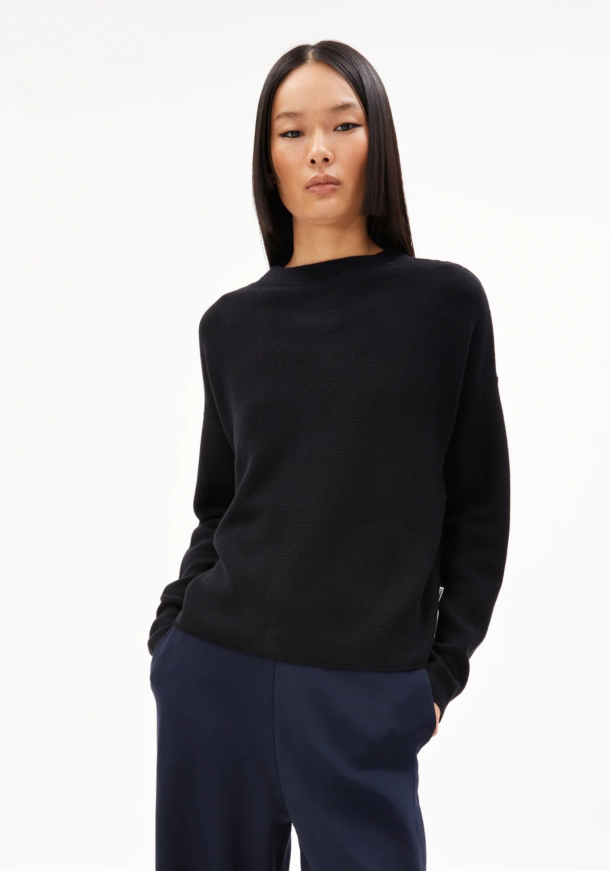 The Merinaa Links Links fine knit sweater boasts a loose, casual fit and a modern mock neckline.