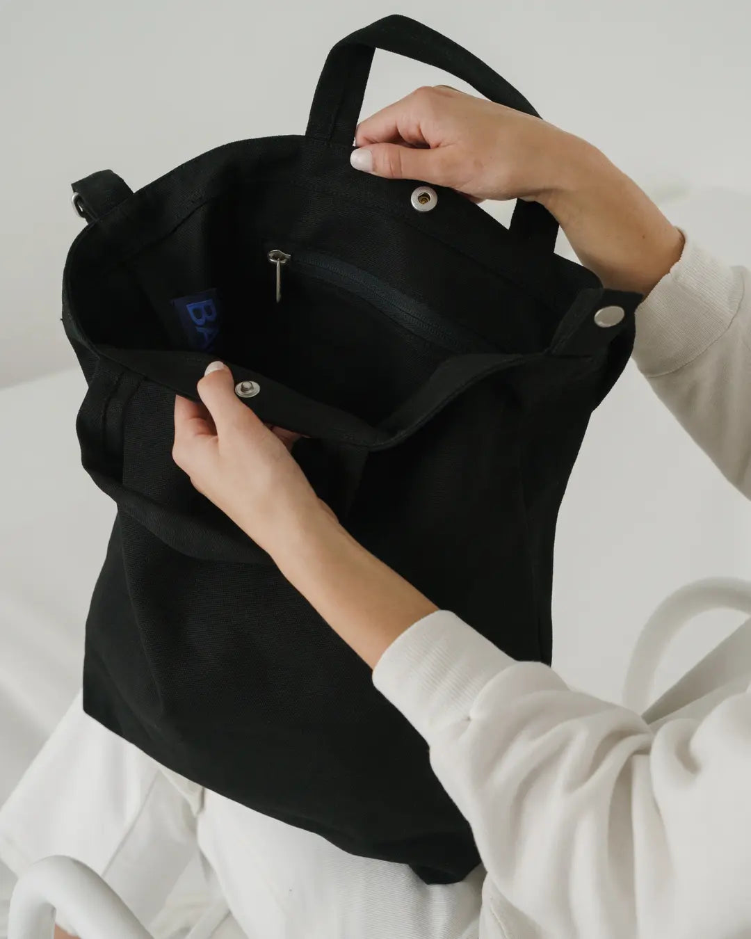 Baggu's classic everyday canvas tote carries easily in hand or over shoulder. It’s the perfect bag for toting your laptop, yoga clothes, LPs, art supplies, you name it.
