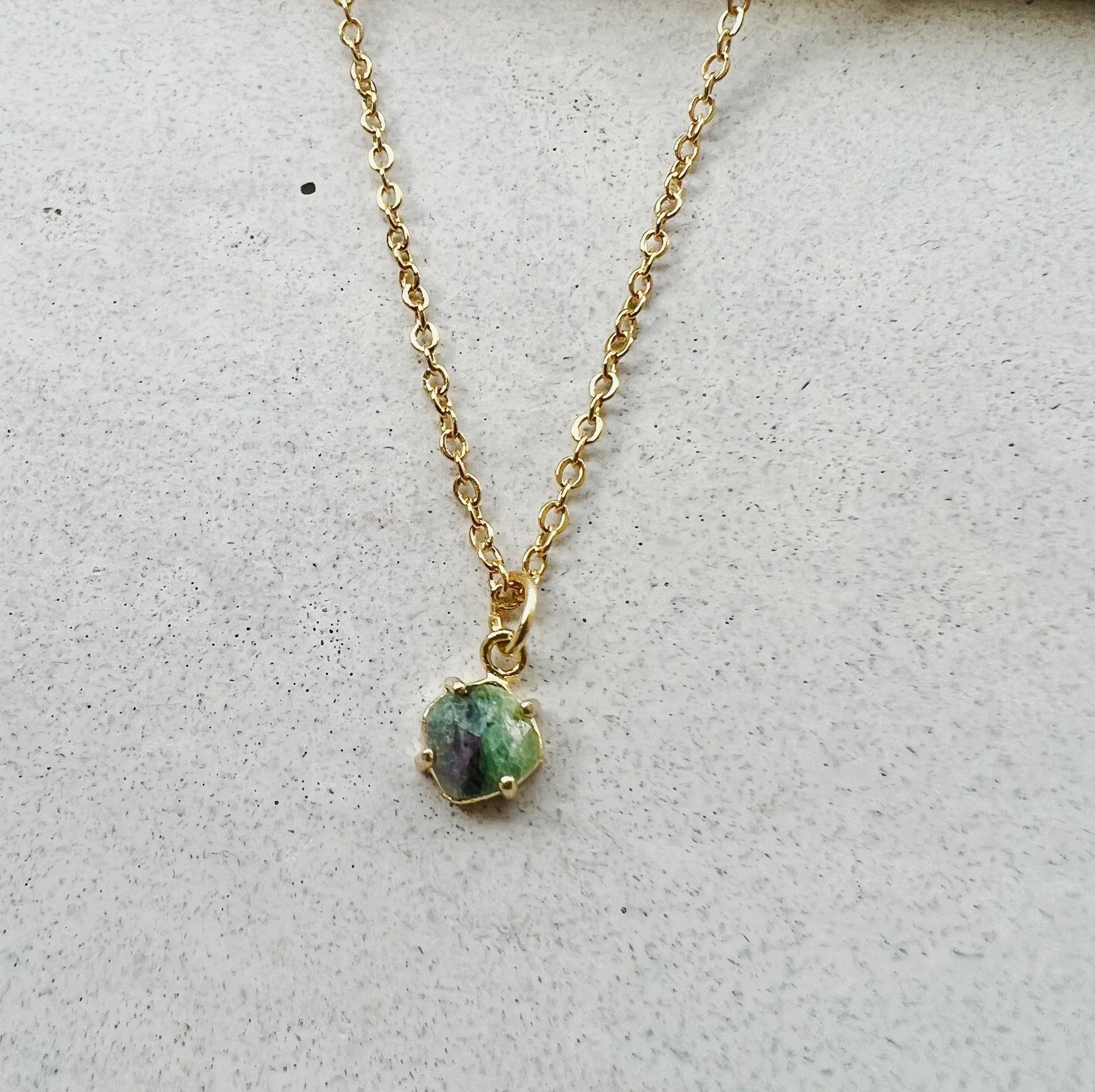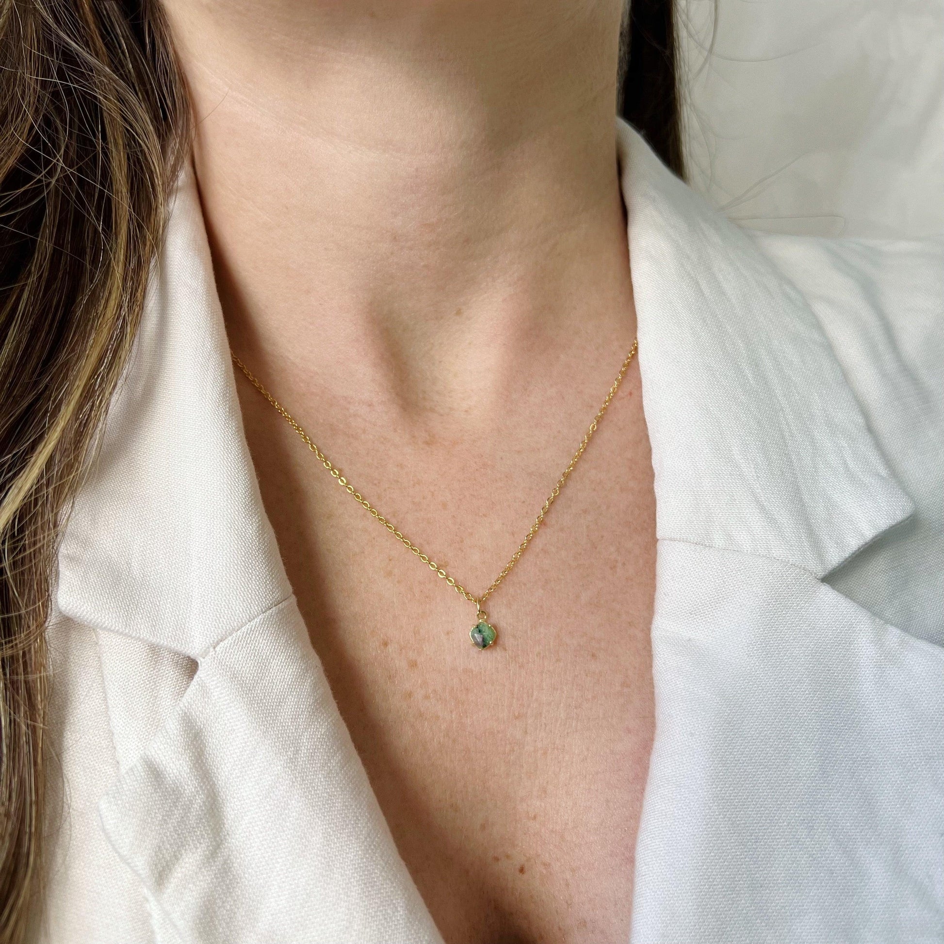 Short necklace decorated with a medallion with a natural green agate stone pendant.