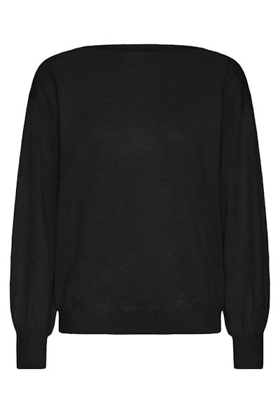 Sweater featuring a wide boat neckline, relaxed silhouette, and subtle ribbed finishes on cuffs and hem. Dropped shoulders and full-length sleeves enhance its effortlessly cool appeal.