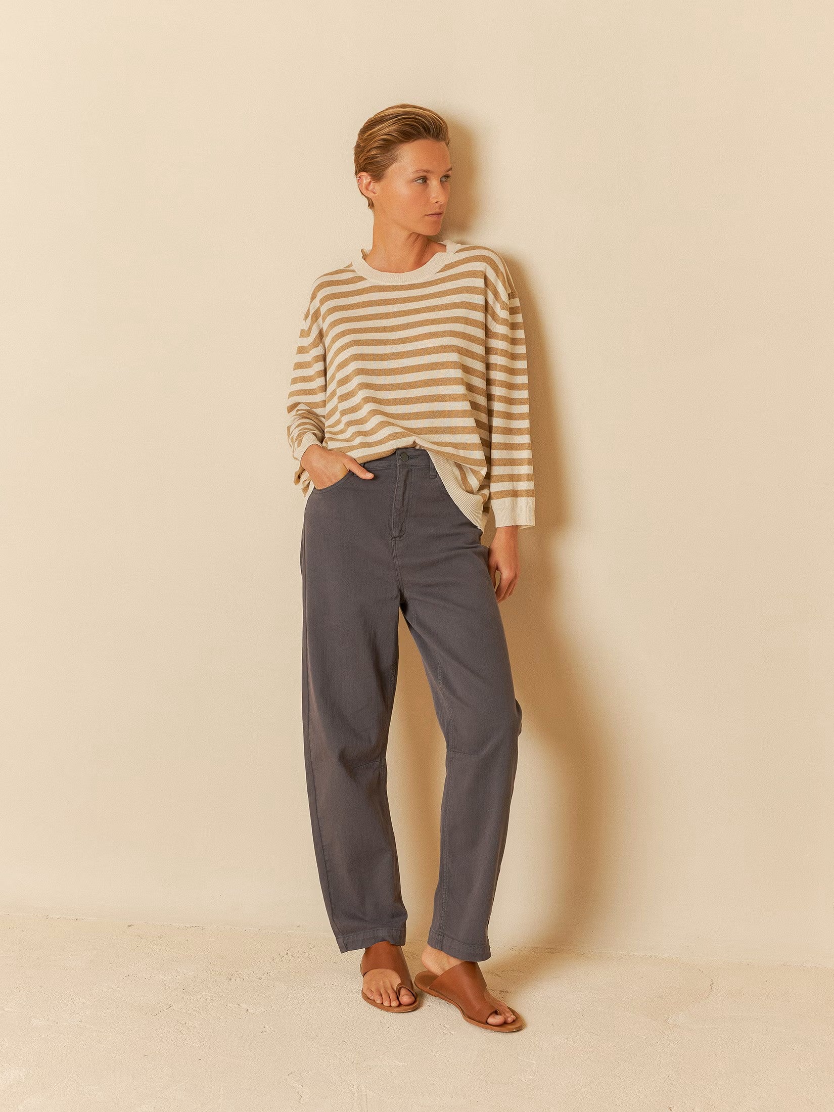 Designed with comfort and style in mind, the Indi + Cold Jersey Stripe Sweater is the perfect addition to your wardrobe. Its slightly oversized fit allows for a relaxed and effortless look, while the ribbed hem and sleeves add a touch of sophistication. Pair it with your favorite fitted pieces for a fashionable and cozy outfit.