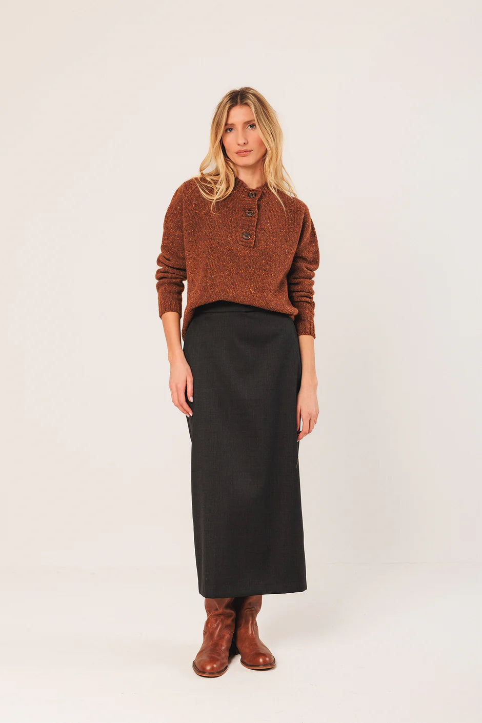Ribbed Perkins collar and buttoned half-placket closure • Neps-effect wool fabric • Ribbed cuff and hem details • Relaxed fit: Designed to feel slightly loose