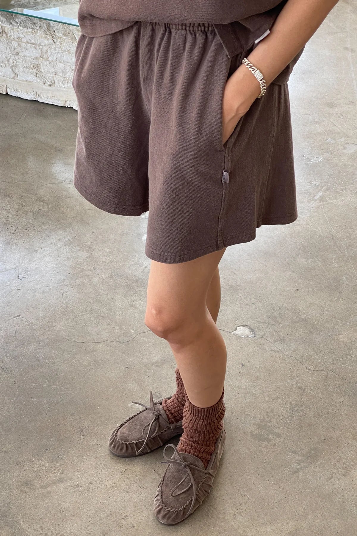 Dream shorts inspired by retro basketball shorts — Crafted from a heavy weight cotton knit, the Flared Basketball Shorts feature an elasticated, high waist with an A-line shape. They're full coverage, yet flattering and designed with a slightly shorter outseam and perfect mid thigh length.