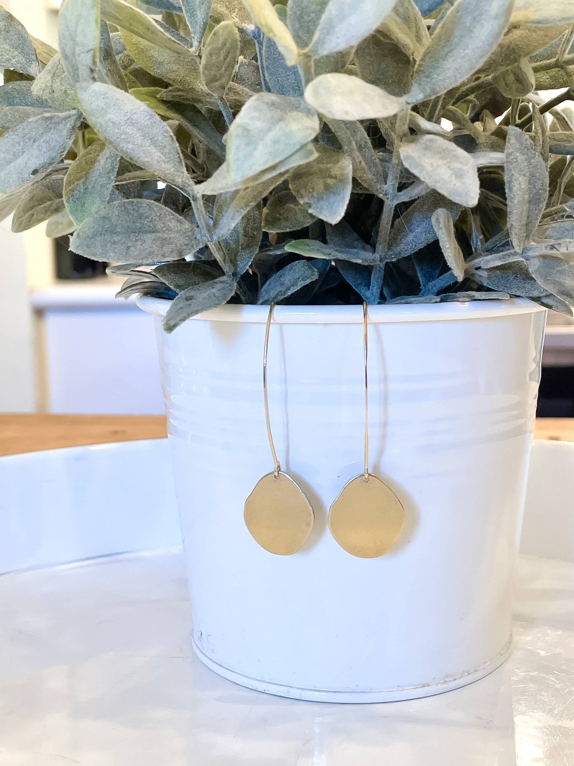 Dive into the world of unique style with Clover + Coast Designs' Long Drop Irregular Coin earrings.