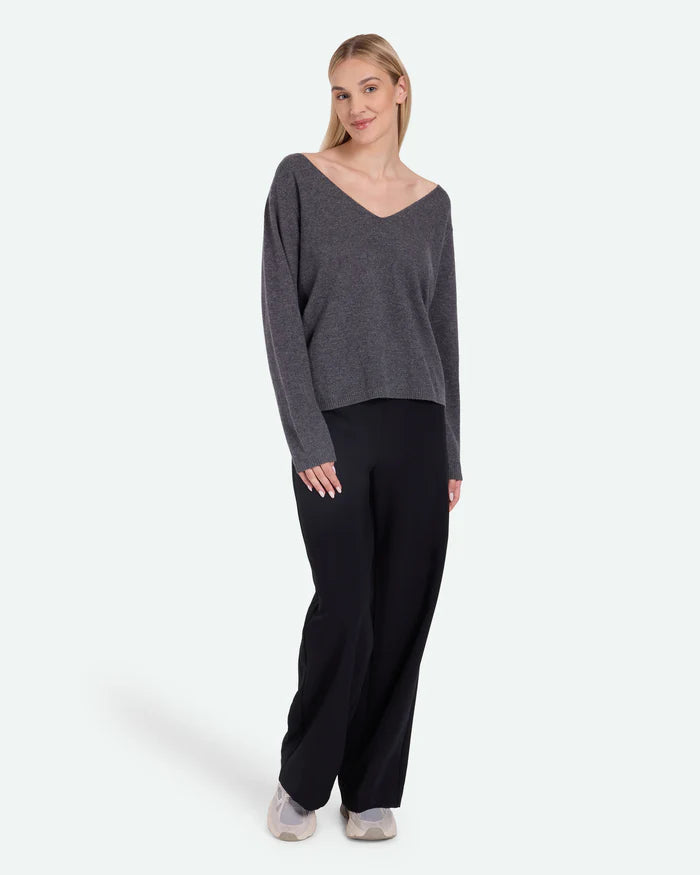 Codas is a knitted jumper made from 60% merino wool and 40% recycled wool for a soft and flattering quality. The shirt has a slightly loose fit and is designed with long sleeves and a deep v-neck at the front.