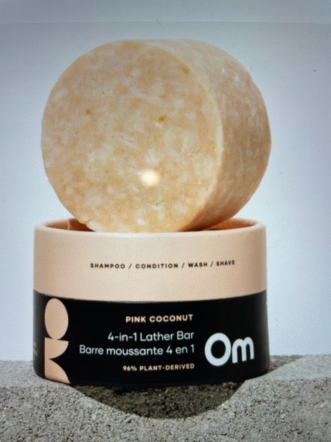 Om’s creamy, fluffy lather bar delivers tangle-free locks and incredibly soft skin.