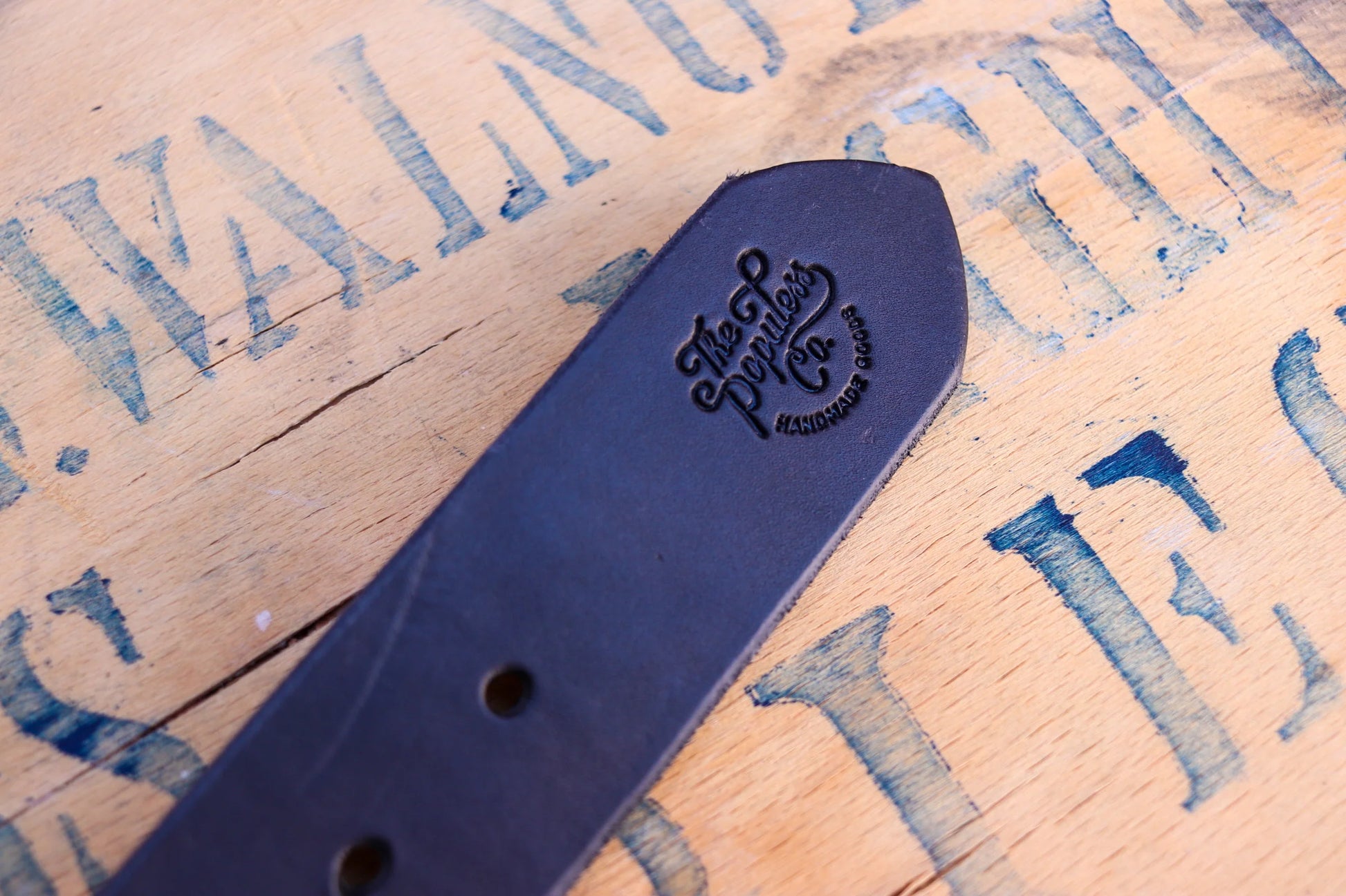 Used for quality, durability and built for your journey. "The Populess Co." embossed on the tip. Note each piece of natural leather we use has its own characteristics and imperfections.