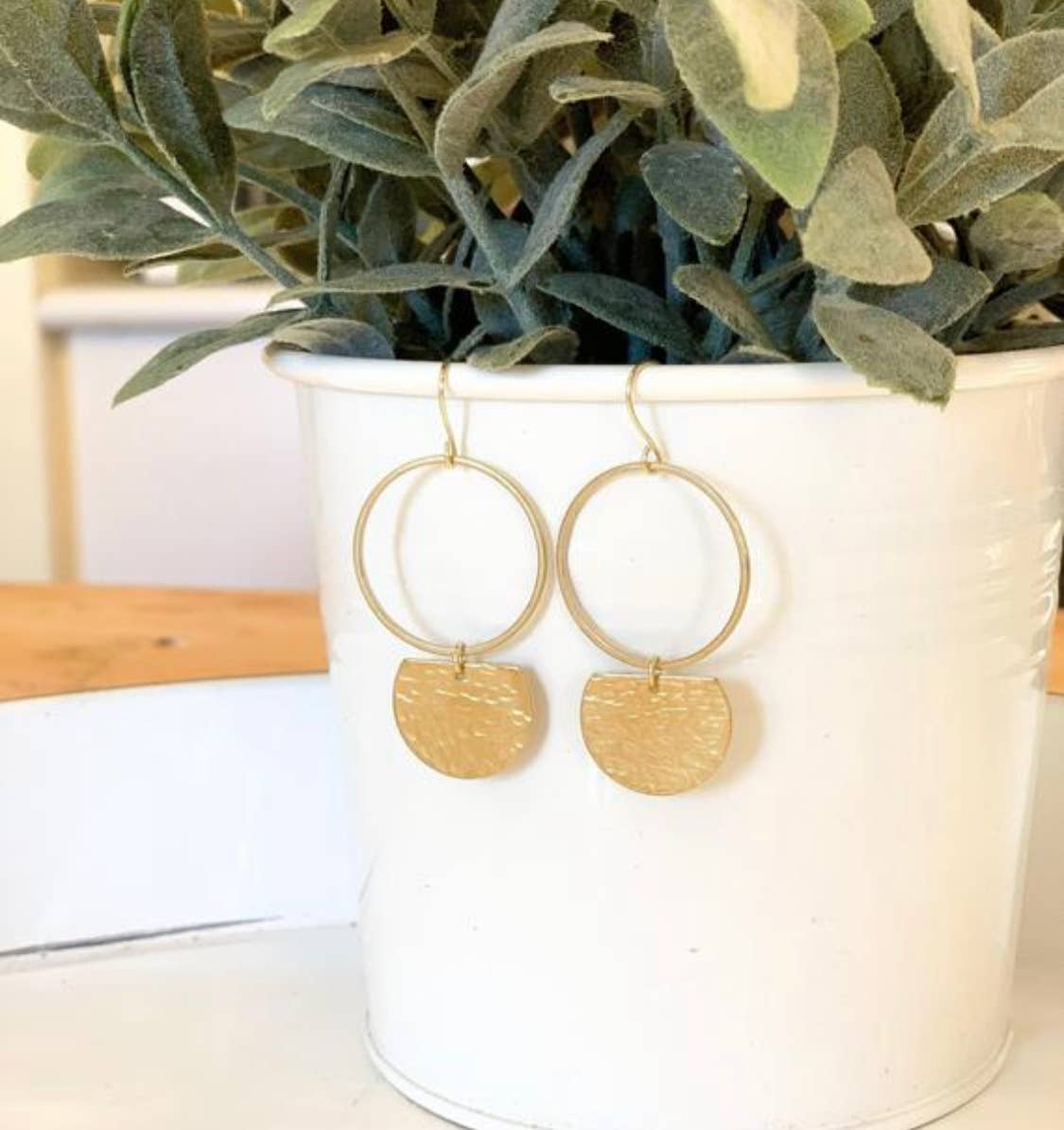 From Clover + Coast Designs comes the Small Semi Circle Dangle earrings. These earrings, with their hammered finish, encapsulate the brand's ethos of creating handcrafted statement pieces that cater to every girl's style.