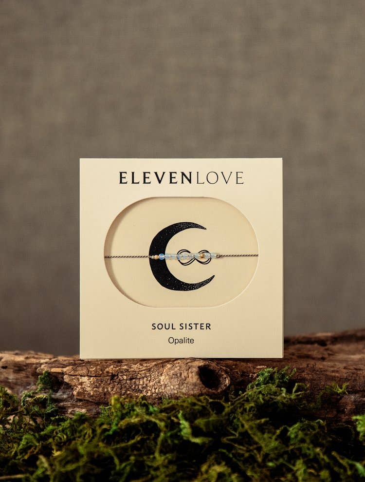 Beautiful, dainty and minimalistic string bracelet made from 100% silk string, 2-3mm opalite, and 14K gold filled beads. Special, endearing wish written on the back of the card.