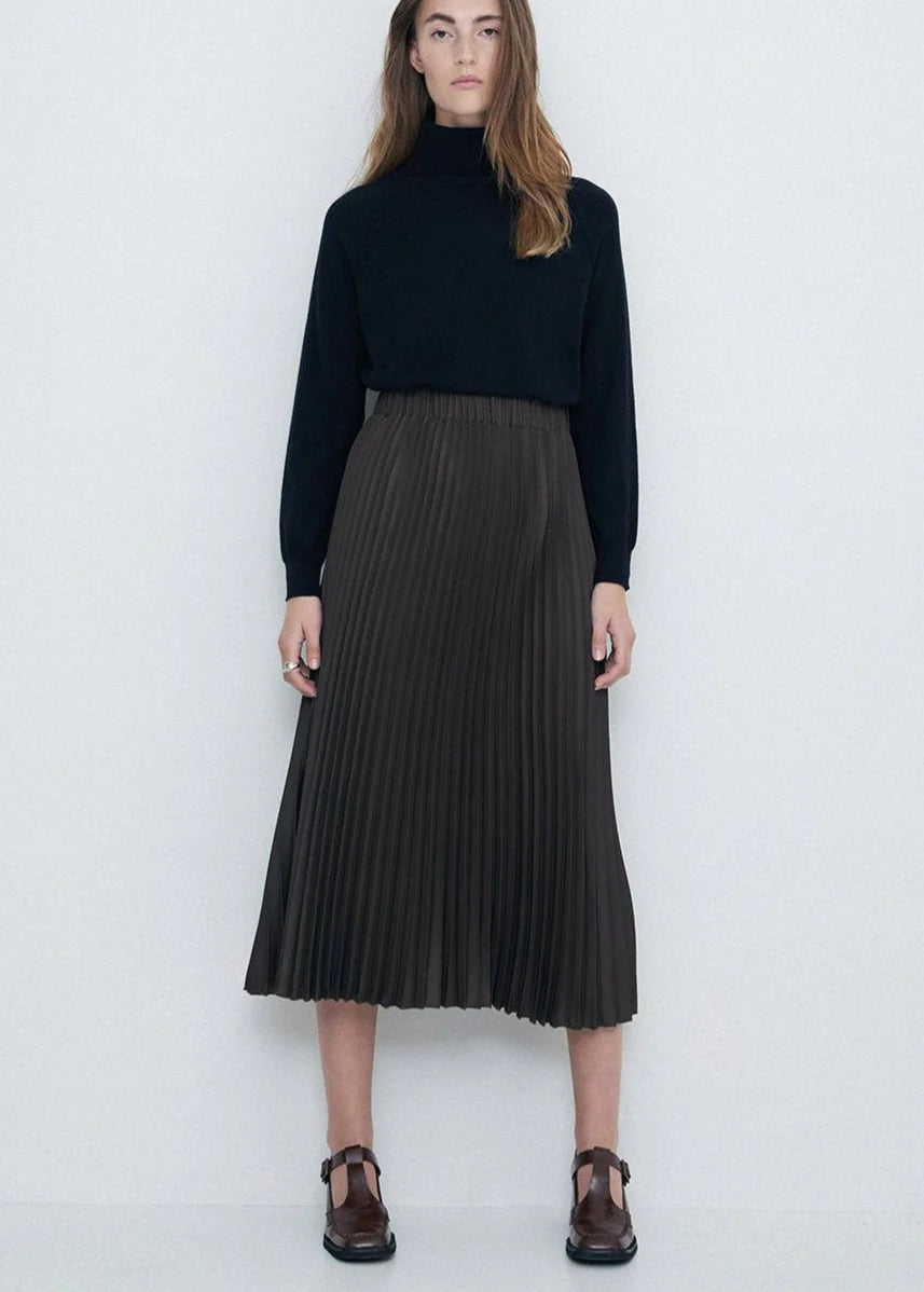 This elegant pleated skirt from Yerse effortlessly blends sophistication with comfort. Crafted from a soft, flowy fabric, it features pleats that provide movement and flow. Its elastic waistband ensures a comfortable, adjustable fit. This skirt can be styled with a sweater or a blouse for a chic, everyday look.